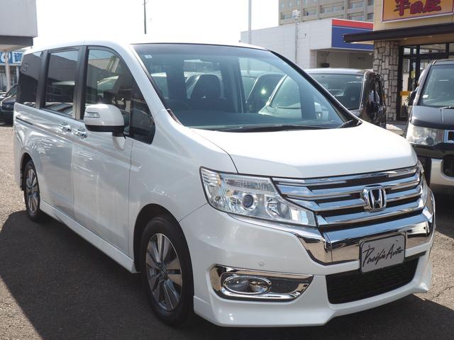 ホンダ ステップワゴンスパーダ 後期Z 地デジ9型ナビ 12.1型リアモニター 両側電動ドア スマートキー 8人 HID 16インチアルミ 革巻ハンドル Bluetooth CD録音 DVD SD バックカメラ ETC クルコン 横滑り防止VSA コーナーセンサー i-STOP 関東仕入 禁煙