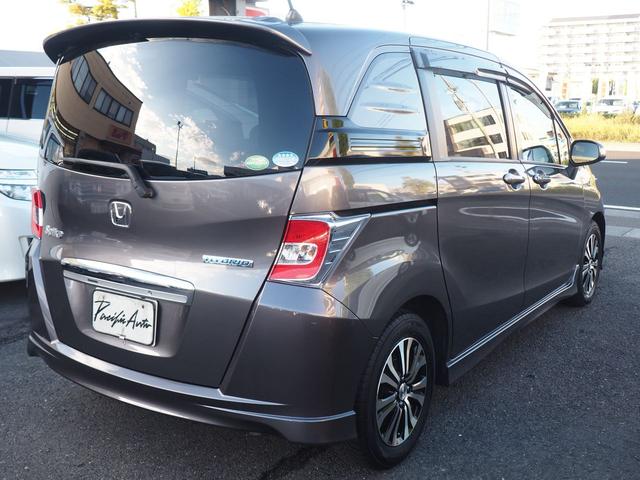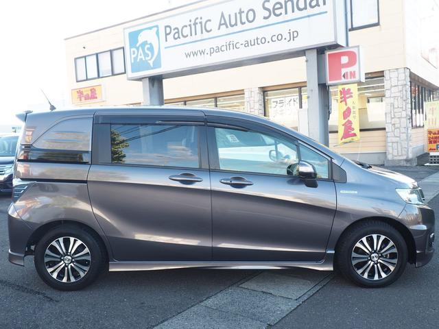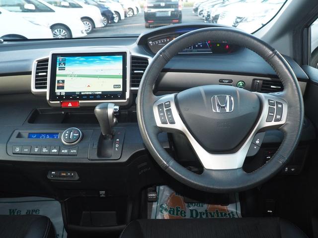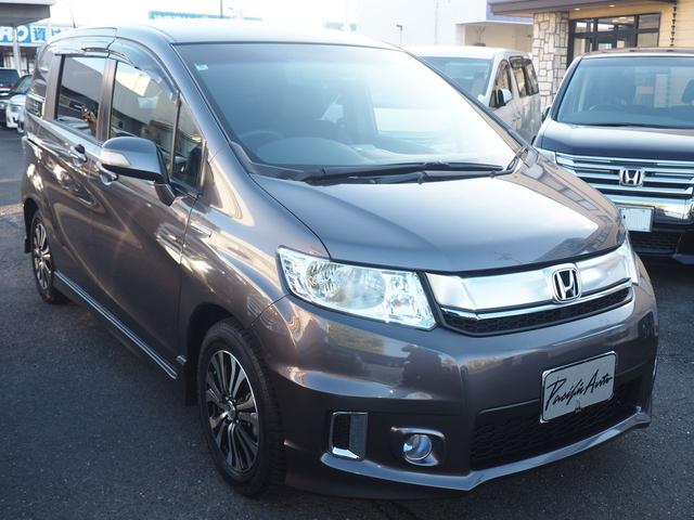 ホンダ フリードスパイクハイブリッド ジャストセレクション 9型ナビ バックカメラ 両側電動ドア スマートキー 5人乗り ハーフレザー HIDライト 純正エアロ ウィンカードアミラー 15インチアルミ Bluetooth 地デジTV CD録音 DVD クルコン 横滑り防止 ETC 関西仕入 禁煙車