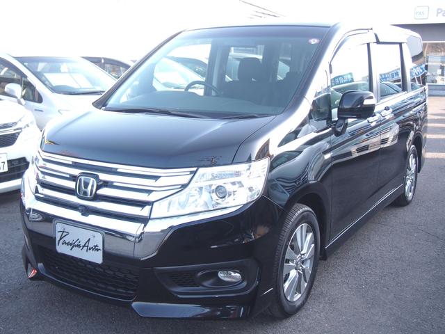 ホンダ ステップワゴンスパーダ 4WD Zi 地デジHDDナビ 後席モニター 全方位カメラ 両側電動ドア スマートキー 8人乗り HID 革巻ハンドル USB CD録音 DVD 全方位カメラ ETC 衝突軽減ブレーキ 追従型クルコン 横滑り防止 リアヒーター i-STOP 1オーナー 禁煙車